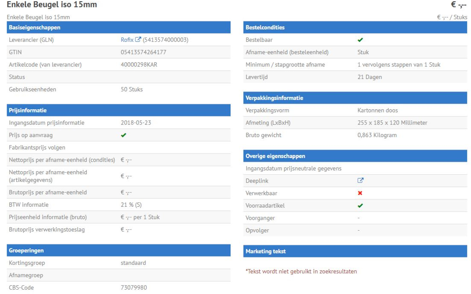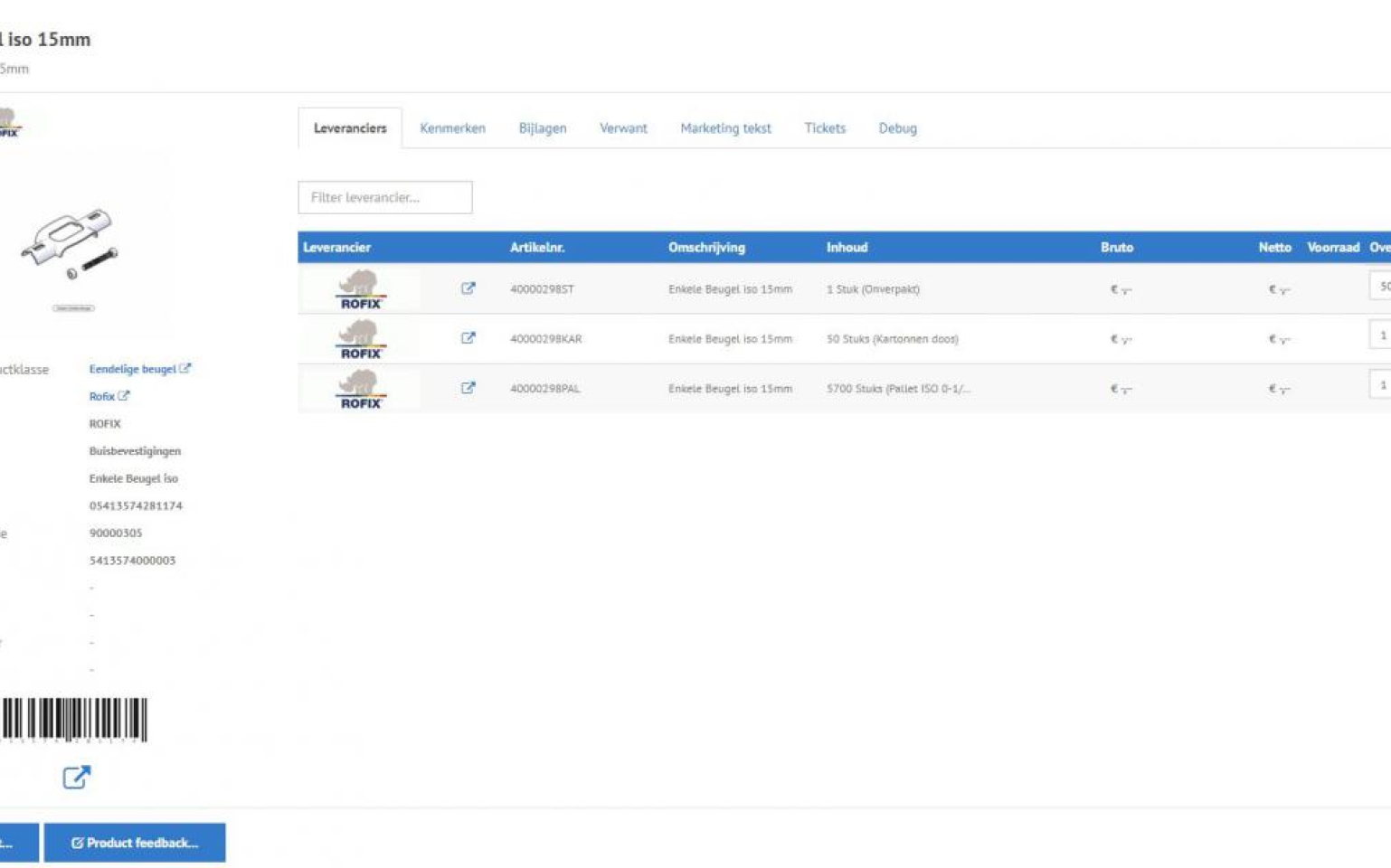 Door te klikken op een leverancier in de productdetails, krijgt u de artikeldetails van de betreffende leverancier.